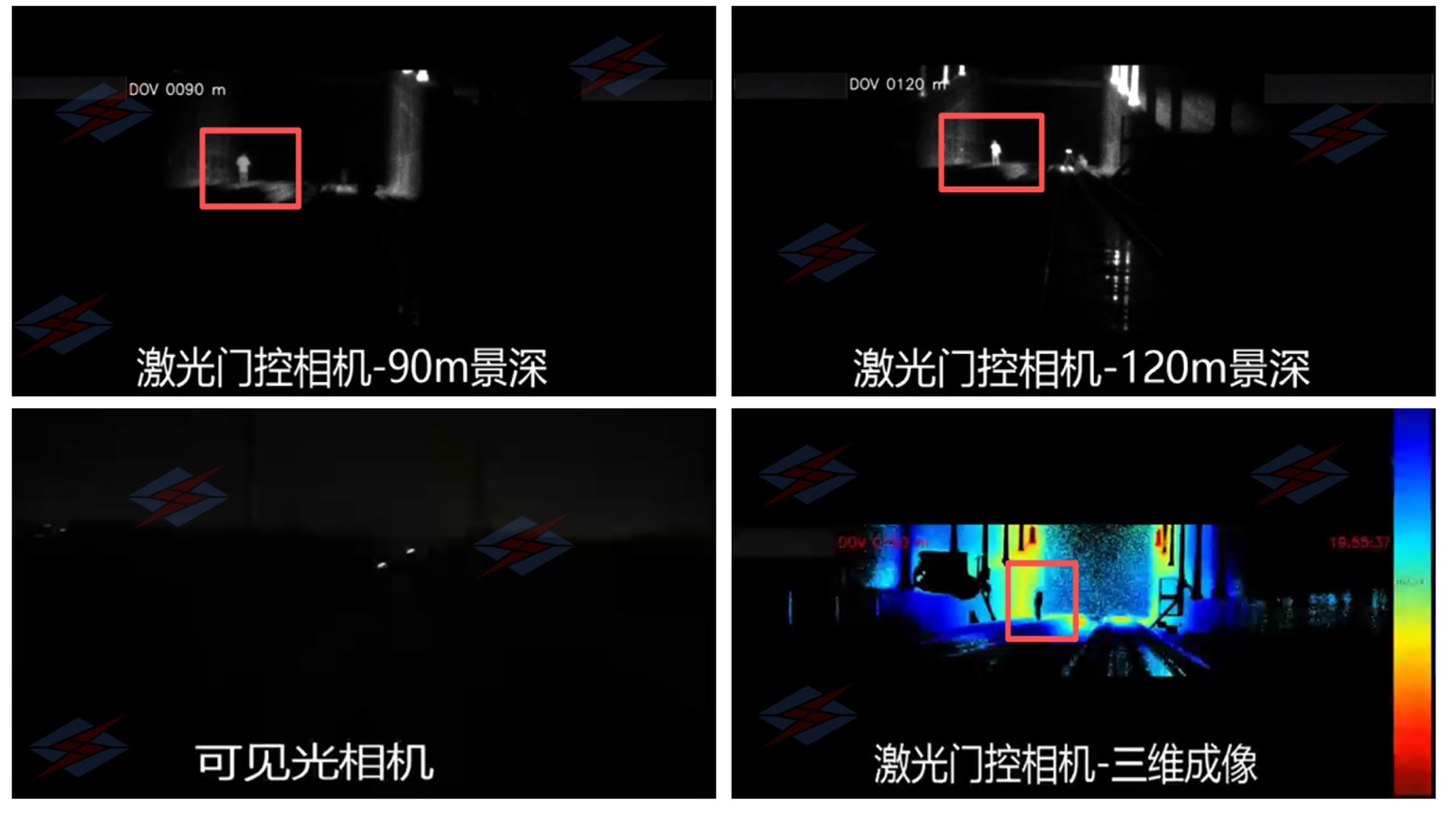 在普通監(jiān)控畫面已趨于模糊的暗光環(huán)境下,激光門控相機(jī)通過同步開啟門控成像模式,實(shí)現(xiàn)了對(duì)不同距離目標(biāo)的分層精準(zhǔn)觀測(cè)??舍槍?duì)特定距離區(qū)間進(jìn)行選擇性清晰成像,有效抑制前景與背景干擾。實(shí)現(xiàn)在夜間和霧雨雪天氣下同時(shí)鎖定近處與遠(yuǎn)方等多層次目標(biāo)。為無照明鄉(xiāng)間道路、 ?夜間海上搜救、隧道出入口、安防周界防護(hù)等低照度場(chǎng)景下提供了遠(yuǎn)超傳統(tǒng)視覺的感知能力。